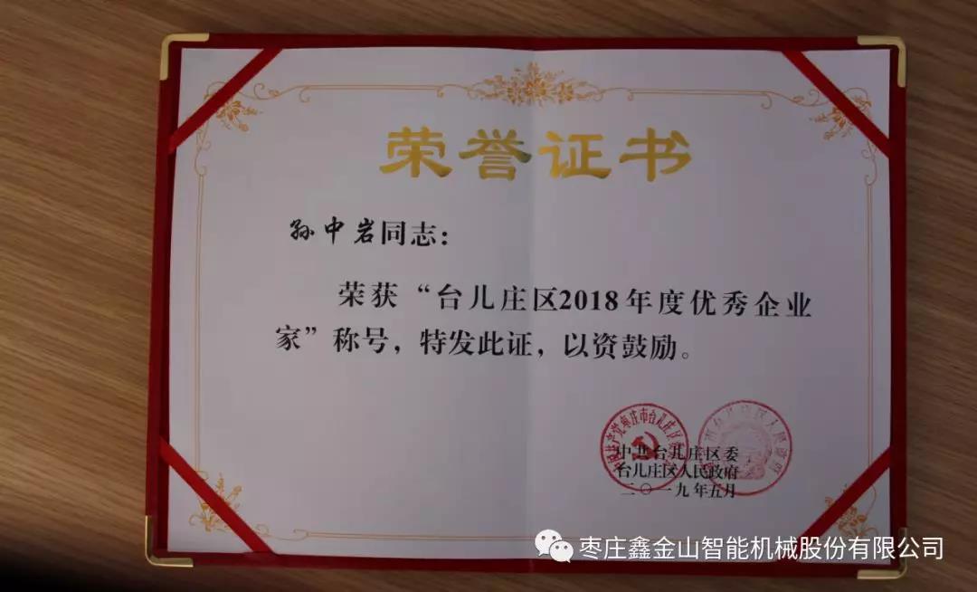 5月31日上午,臺兒莊區(qū)總結(jié)表彰暨“對標(biāo)先進”工作動員會議隆重召開,全區(qū)各單位、各部門、各企業(yè)的代表共計300余人參加會議。棗莊鑫金山智能機械股份有限公司董事長孫中巖作為重點骨干企業(yè)的代表出席會議并獲“優(yōu)秀企業(yè)家”殊榮及獎勵。