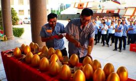 隨后鑫金山公司副總經(jīng)理王總宣布積分制第一月度獲獎(jiǎng)名單,現(xiàn)場(chǎng)為我們表現(xiàn)優(yōu)秀的獲獎(jiǎng)員工舉行了砸金蛋抽獎(jiǎng)游戲環(huán)節(jié),并準(zhǔn)備了一等獎(jiǎng)、二等獎(jiǎng)、三等獎(jiǎng)精美的獎(jiǎng)品和雙份中秋節(jié)福利。獲獎(jiǎng)?wù)咭来紊吓_(tái)砸金蛋,一件件大獎(jiǎng)被抽走,一個(gè)個(gè)臉上洋溢著喜悅的笑容。這次快樂(lè)會(huì)議無(wú)論是臺(tái)上砸金蛋的還是臺(tái)下看著的員工們都玩的很開(kāi)心。王總表示“快樂(lè)會(huì)議”旨在為了快樂(lè),為了榮耀,讓員工歡聚在一起,在公平和相互尊重的競(jìng)爭(zhēng)中,追求共同的快樂(lè)和超越,享受工作挑戰(zhàn)帶來(lái)的樂(lè)趣。鑫金山公司積分制管理快樂(lè)會(huì)議由此起步,通過(guò)雙重認(rèn)可+正向引導(dǎo),讓員工在積分制中體驗(yàn)到有趣與感動(dòng),工作壓力得以釋放,促進(jìn)員工向好、向上。
