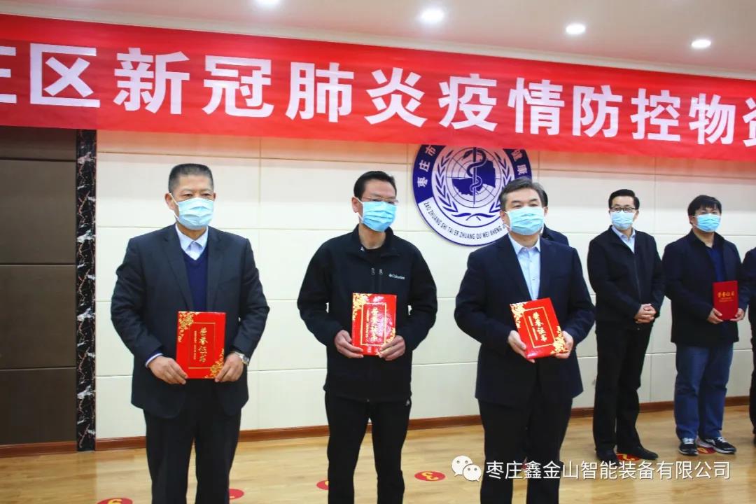 棗莊鑫金山智能裝備有限公司董事長孫中巖表示,作為一個成長于臺兒莊本土的企業,鑫金山責無旁貸、義不容辭,理應積極履行社會責任,盡公司的綿薄之力,助力疫情防控工作。