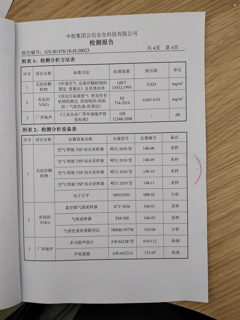 廢氣、噪聲檢測報告