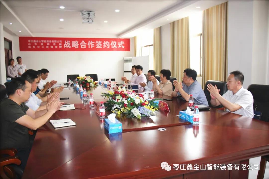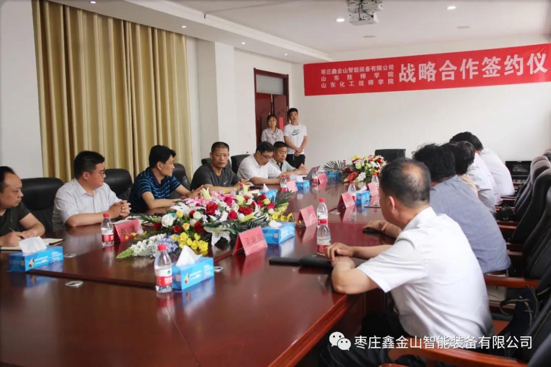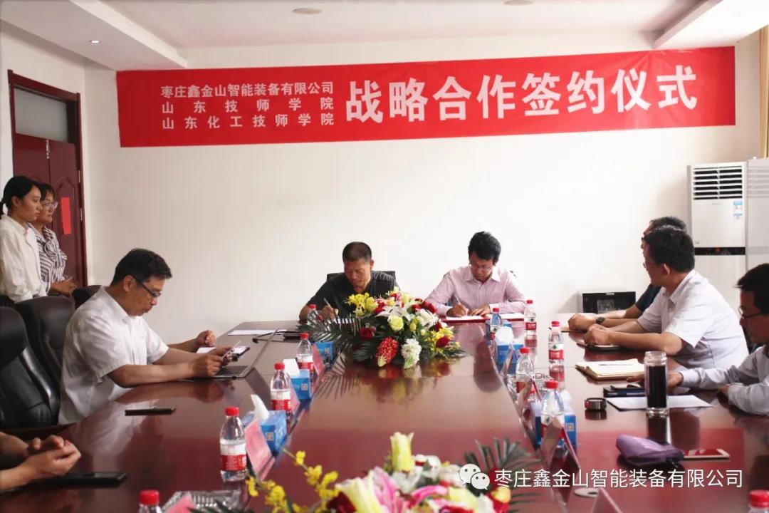 導讀:為進一步強化校企合作,推動產學研深度融合。5月25日,棗莊鑫金山智能裝備有限公司與山東技師學院、山東化工技師學院戰略合作簽約儀式在鑫金山公司總部隆重舉行。