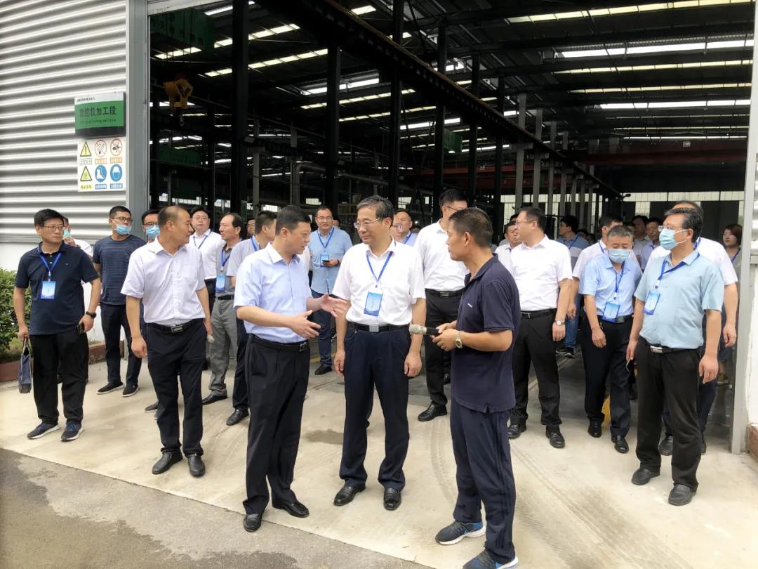 隨后,觀摩團一行來到鑫金山新廠區,深入了解現階段企業生產和經營情況,實地考察了鑫金山智能化一體生產車間,對鑫金山智能化車間建設、高效節能的礦山裝備制造等情況給予了高度評價。