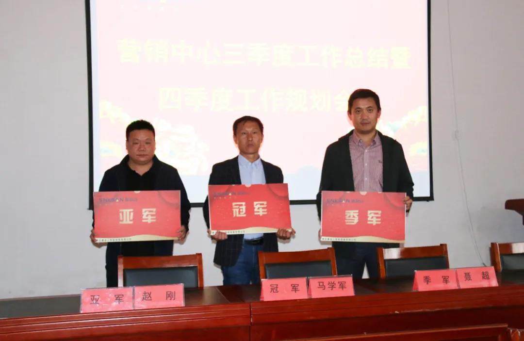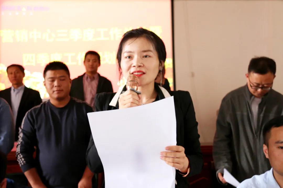 營銷總監(jiān)胡振霖通過精準(zhǔn)的數(shù)據(jù)分析對第三季度的工作做了全面的總結(jié),表彰了工作突出的同事,也深刻分析了存在的問題。并對四季度的工作目標(biāo)做了詳細(xì)說明和部署,也對營銷戰(zhàn)士們的工作提出了更高的要求。同時用自己的親身經(jīng)歷激勵大家再鼓干勁,為了目標(biāo)而努力。zui后,胡總要求大家團(tuán)結(jié)一心,深挖潛力,勢必完成今年的銷售指標(biāo)。