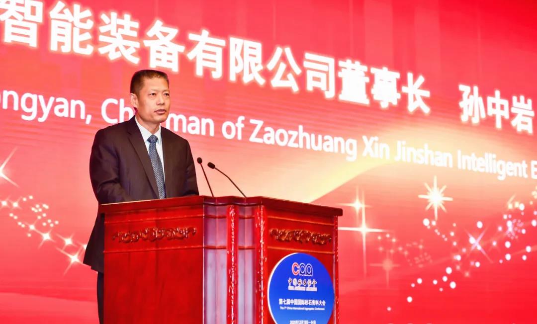 棗莊鑫金山智能裝備有限公司董事長孫中巖在開幕式致辭中指出,非常榮幸和各位業界高朋相聚在英雄之城武漢,參加由中國砂石協會主辦的第七屆中國國際砂石骨料大會,作為承辦方之一,鑫金山始終把“共創金山銀山,共享綠水青山”,作為企業使命,致力于打造卓越的綠色礦山裝備制造商和綜合服務商。并代表棗莊鑫金山智能裝備有限公司向各位領導及業內同仁的蒞臨表示熱烈歡迎,向各位朋友長期以來給予的關心和支持表示由衷的謝意。
