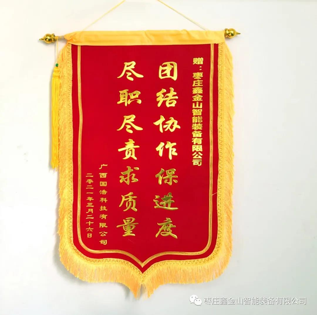 導讀:“金杯銀杯,不如客戶的好口碑”。2021年3月份期間,棗莊鑫金山智能裝備有限公司憑借優質高效的服務連續收到來自多家客戶贈送的錦旗與表揚信,充分彰顯了客戶對鑫金山公司的高度認可與信任。
