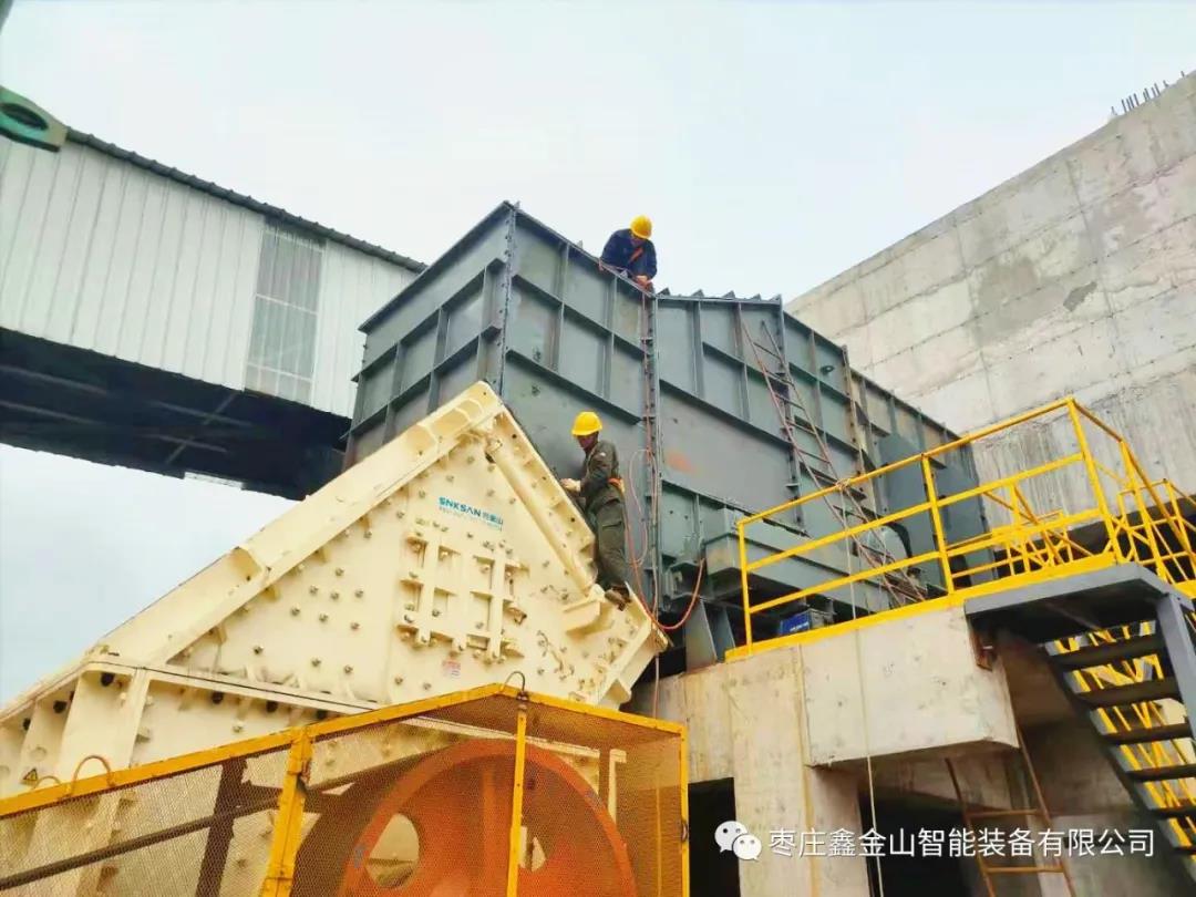 由鑫金山施工建設并提供全套破碎篩分設備及安裝服務,生產線配置為:板式給料機1臺、輥式喂料機1臺、新型單段重錘反擊破1臺、回料破1臺、可逆式制砂機1臺、圓振動篩6臺等。成品料粒度為:0-5mm、10-20mm、20-30mm、50-80、80-120和機制砂六種骨料,可滿足當地不同市場對高標準骨料、溶劑骨料的需求。