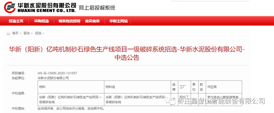 導讀:棗莊鑫金山智能裝備有限公司在激烈的競爭中脫穎而出,成功中標華新水泥年產1億噸機制砂石綠色生產線項目。這是鑫金山公司繼中標中電建集團神山年產7000萬噸砂石骨料項目之后,再次擊敗國內外的競爭對手,成功中標的同類生產線項目。