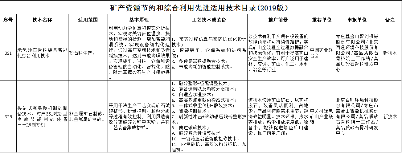 導讀:2019年12月,國家自然資源部辦公廳發布了關于《礦產資源節約和綜合利用先進適用技術目錄(2019版)》的公示,棗莊鑫金山智能機械股份有限公司的樓站式高品質機制砂制備技術、時產351噸新型高效節能制砂裝備——RV制砂機和綠色砂石骨料裝備智能化綜合利用技術作為新技術成功入選,這兩項先進適用技術分別由中關村綠色礦山產業聯盟和中國礦業聯合會推薦。