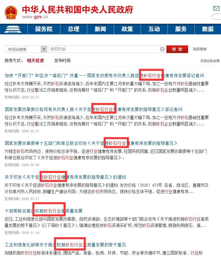 據中國砂石協會和中國砂石骨料網了解,中國政府網已經多次關注、報道砂石行業,并對砂石行業重要文件進行權威發布。