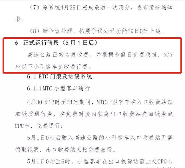 《關于高速恢復收費系統切換方案》的征求意見稿文中指出,高速可能5月1日后恢復正常收費。