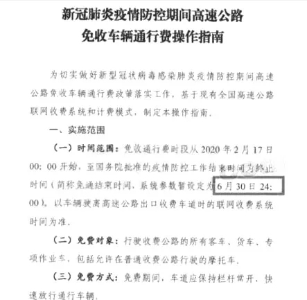 根據交通運輸部關于疫情期間高速公路管理的相關規定,高速公路免費通行時間從2月17日零時起至疫情結束,高速公路實行免費通行,目前免費通過的截止時間暫定于6月30日24時。