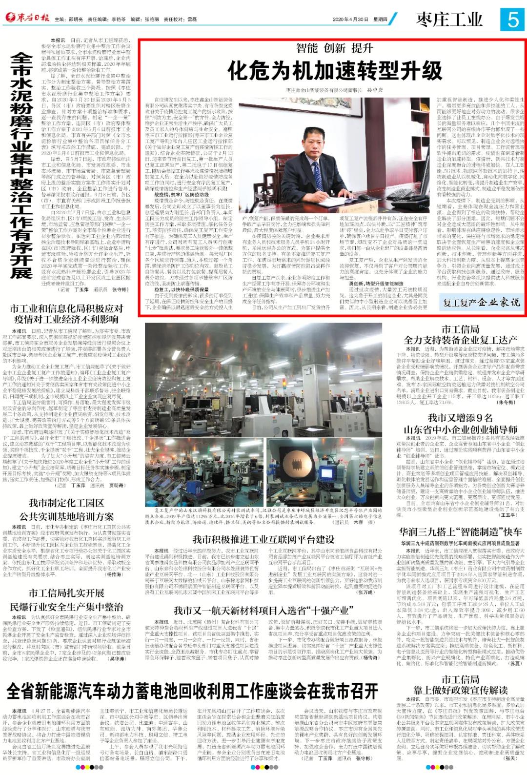 《棗莊日報》聚焦鑫金山化危為機加速轉(zhuǎn)型升級