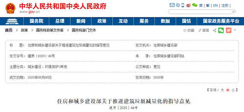 在今年兩會召開之前的5月8號,住建部就已發布關于推進建筑垃圾減量化的指導意見(下簡稱意見)。意見確定工作目標,2020年底,各地區建筑垃圾減量化工作機制初步建立。2025年底,各地區建筑垃圾減量化工作機制進一步完善,實現新建建筑施工現場建筑垃圾(不包括工程渣土、工程泥漿)排放量每萬平方米不高于300噸,裝配式建筑施工現場建筑垃圾(不包括工程渣土、工程泥漿)排放量每萬平方米不高于200噸。