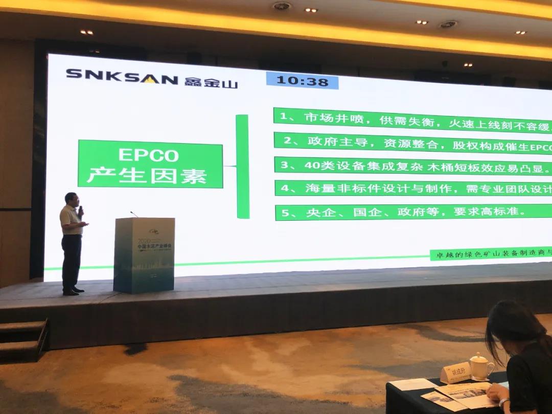 會上,棗莊鑫金山智能裝備有限公司總經理裴尚作了《EPCO模式助推建材行業砂石鏈延伸》的主題演講,得到了行業精英及眾多媒體的好評與關注。