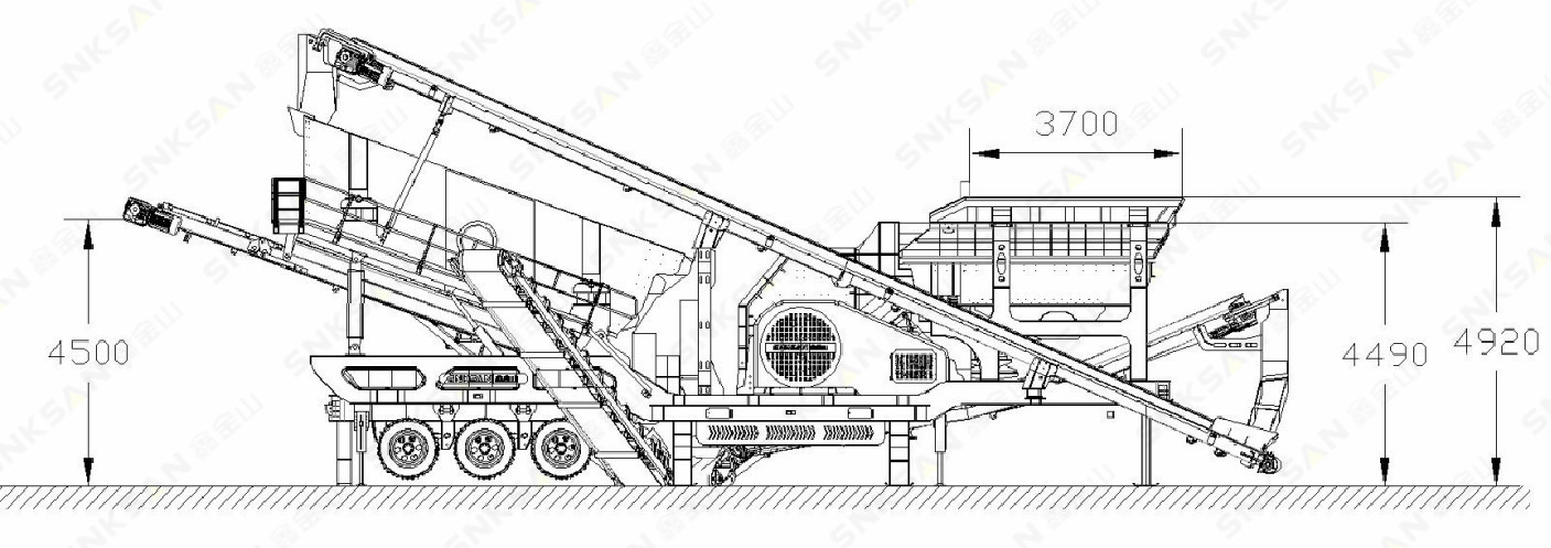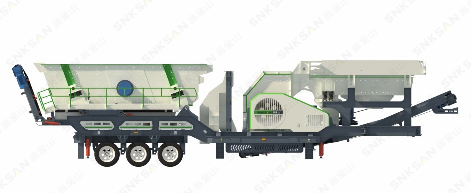 移動站整機配置給料機、錘破、振動篩和皮帶輸送機,集破碎、篩分、給料和物料輸送于一體,高度集成,是一個移動的小型生產線。